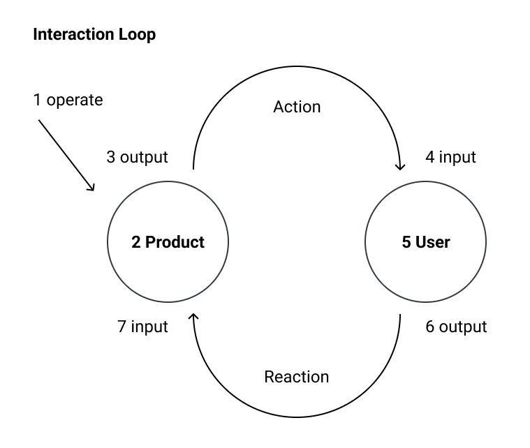 인터랙션을 디자인하기 위해선 인터랙션이 무엇인지부터 정의해야합니다. 인터랙션은 액션(action)과 이로부터 파생되는 리액션(reaction)의 반복되는 과정을 의미합니다. 가령, 액션은 화면에서 사용자에게 보여주는 정보를 의미하고, 리액션은 이 정보를 보고 버튼을 클릭하는 것과 같이 사용자의 반응을 의미합니다. 사용자의 반응은 화면의 변화를 발생시킬 것이고, 이는 또 다른 인터랙션으로 이어질 것입니다. 즉, 인터랙션 디자인은 제품을 활용하여 사용자의 리액션을 디자인하는 일입니다.